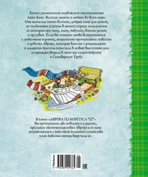 Книги знаменитой норвежской писательницы Анне-Кат. Вестли знают и любят во всём мире. Она написала много весёлых, добрых книг для детей, но особенным успехом в нашей стране пользуются её истории про папу, маму, бабушку, восемь детей и грузовик. Если вы хотите снова встретиться с любимыми героями, непременно прочитайте повести о девочке Авроре, которая вместе с родителями и младшим братом переехала в новый высотный дом и однажды увидела в окно ту самую бабушку и Самоварную Трубу.