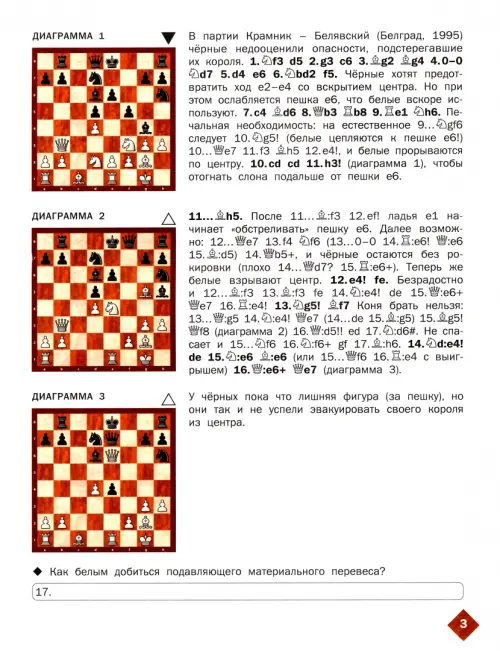 Тетрадь предназначена для закрепления знаний, полученных при работе с учебником «Шахматная школа. Третий год обучения», рекомендованным Федерацией шахмат России. Эффектные партии и комбинации помогут раскрыть перед учениками всю красоту и глубину шахмат, а головоломки и шарады позволят проводить занятия в игровой, увлекательной форме. Темы уроков: «Атака на короля в центре», «Гамбит Эванса», «Слабые поля вблизи короля», «Кто сильнее: слон или конь?», «Королевский гамбит», «Защита двух коней», «Сицилианская защита, вариант дракона», «Французская защита», «Ферзевый гамбит», «Староиндийская защита». Тетрадь содержит 26 заданий «Найди сильнейшее продолжение» и 90 позиций на мат в три хода.