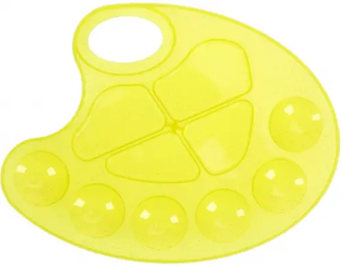 Палитра с блестками предназначена для смешивания красок и получения новых тонов при рисовании. Гладкая глянцевая поверхность легко отмывается после использования.