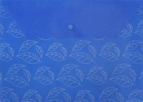 Горизонтальный конверт из пластика, с рисунком "Листочки", синий.