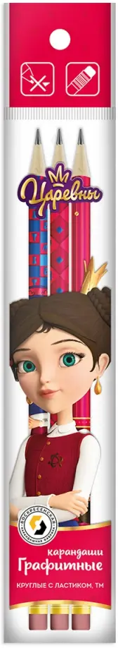 Набор графитных карандашей заточенные с ластиком ТМ "ВКФ" Hot Print серии "Царевны" с градацией твердости ТМ(HB) в пакете с европодвесом по 3 штуки. Изготовлены из сырья и материалов природного происхождения и качественной химически необработанной древесины мелколистной липы, выращенной в экологически чистых районах России. Не токсичны. Проклейка стержня осуществлена по специальной технологии:- увеличивает прочность и надежность заклейки стержня в карандаше;- предохраняет стержень от повреждений при падении, ударе и намокании;- не изменяет цвет, упругость, прочность и чиночные свойства древесины в местах склейки. Карандаши круглой формы, имеют покрытие в виде пленки с нанесением на неё декоративных рисунков - паттернов. Дизайны с царевной Дарьей и узорами серии. Яркие, красивые, привлекательные карандаши.