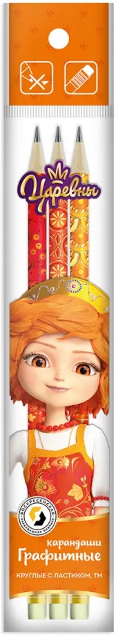 Набор графитных карандашей заточенные с ластиком ТМ "ВКФ" Hot Print серии "Царевны" с градацией твердости ТМ(HB) в пакете с европодвесом по 3 штуки. Изготовлены из сырья и материалов природного происхождения и качественной химически необработанной древесины мелколистной липы, выращенной в экологически чистых районах России. Не токсичны. Проклейка стержня осуществлена по специальной технологии:- увеличивает прочность и надежность заклейки стержня в карандаше;- предохраняет стержень от повреждений при падении, ударе и намокании;- не изменяет цвет, упругость, прочность и чиночные свойства древесины в местах склейки. Карандаши круглой формы, имеют покрытие в виде пленки с нанесением на неё декоративных рисунков - паттернов. Дизайны с царевной Варей и узорами серии. Яркие, красивые, привлекательные карандаши.