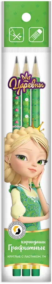 Набор графитных карандашей заточенные с ластиком ТМ "ВКФ" Hot Print серии "Царевны" с градацией твердости ТМ(HB) в пакете с европодвесом по 3 штуки. Изготовлены из сырья и материалов природного происхождения и качественной химически необработанной древесины мелколистной липы, выращенной в экологически чистых районах России. Не токсичны. Проклейка стержня осуществлена по специальной технологии:- увеличивает прочность и надежность заклейки стержня в карандаше;- предохраняет стержень от повреждений при падении, ударе и намокании;- не изменяет цвет, упругость, прочность и чиночные свойства древесины в местах склейки. Карандаши круглой формы, имеют покрытие в виде пленки с нанесением на неё декоративных рисунков - паттернов. Дизайны с царевной Василисой и узорами серии. Яркие, красивые, привлекательные карандаши.