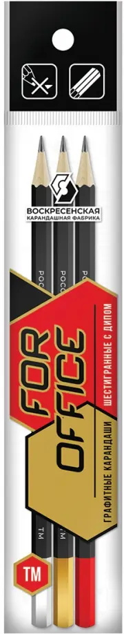 Набор графитных карандашей заточенные ТМ "ВКФ" "For Office" с градацией твердости ТМ (НВ) в пакете с европодвесом. Изготовлены из сырья и материалов природного происхождения и качественной химически необработанной древесины мелколистной липы, выращенной в экологически чистых районах России. Не токсичны.