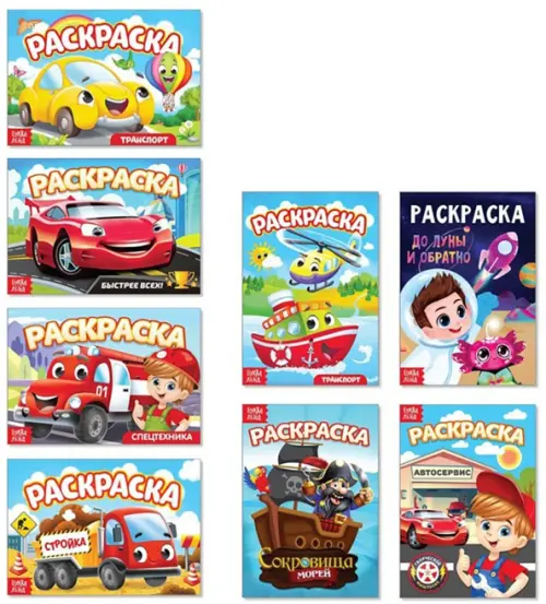 Набор раскрасок «Мои любимые машинки» объединил в себе всё, что так нравится мальчикам. Книжки познакомят малыша с различными видами транспорта, он разрисует спортивные болиды, строительную технику, космические ракеты и даже пиратский корабль.
