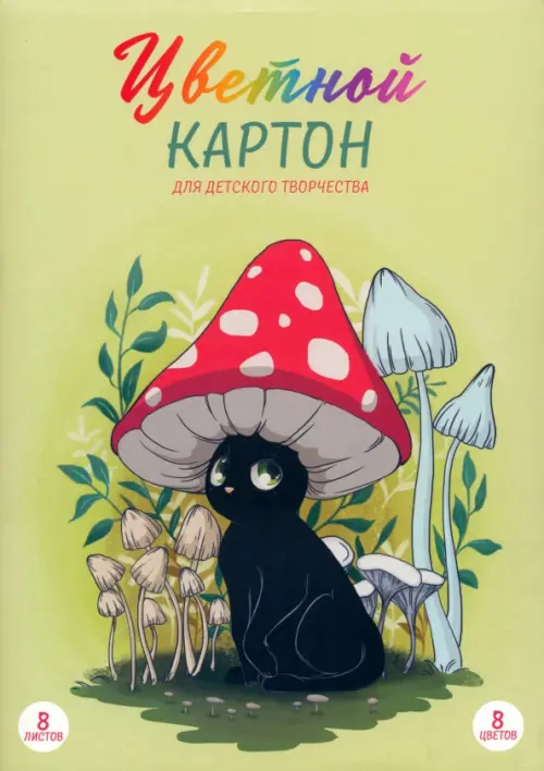 Картон цветной Кот-мухомор, 8 цветов, 8 листов