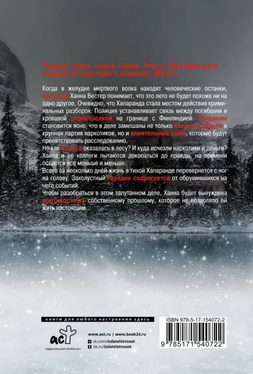 Когда в желудке мертвого волка находят человеческие останки, детектив Ханна Вестер понимает, что это лето не будет похоже ни на одно другое. Очевидно, что Хапаранда стала местом действия криминальных разборок. Полиция устанавливает связь между погибшим и кровавой перестрелкой на границе с Финляндией. Сыщикам становится ясно, что в деле замешаны не только большие деньги и крупная партия наркотиков, но и влиятельные силы, которые будут препятствовать расследованию.