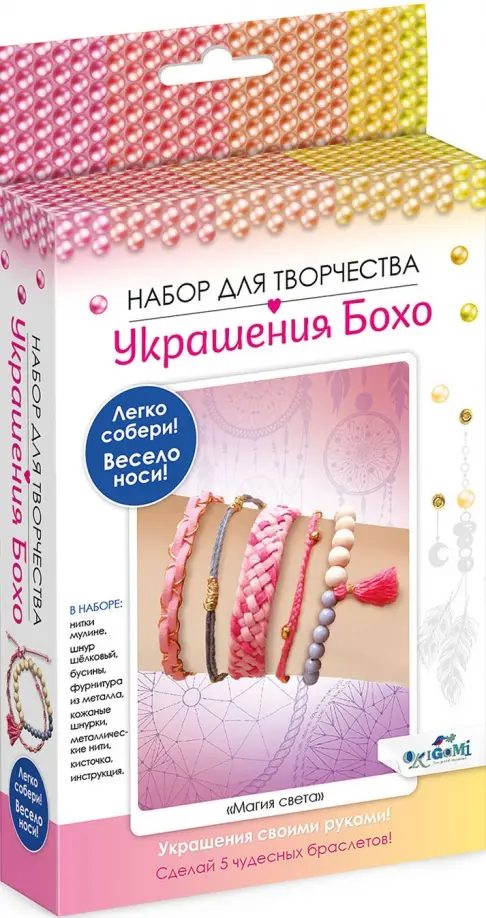 Если вы обнаружили ошибку в описании товара «Набор для создания украшений Бохо. 5 браслетов. Магия света», то выделите её мышкой и нажмите Ctrl+Enter. Спасибо, что помогаете нам стать лучше!