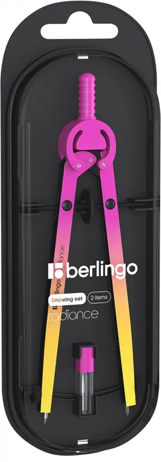 В состав набора входят: циркуль с эргономичной головкой и пенал с запасным грифелем.
