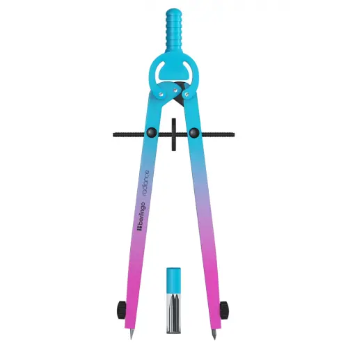 В состав набора входят: циркуль с эргономичной головкой и пенал с запасным грифелем.