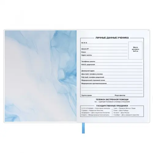 Дневник школьный Голубой мрамор, А5+, 48 листов