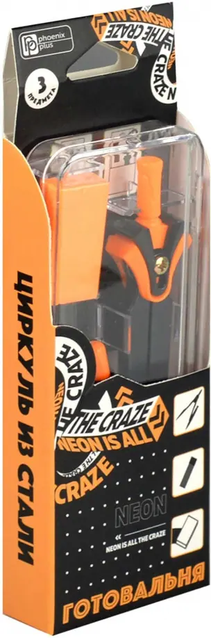 Циркуль со сменными грифелями и ластиком Неоновый оранжевый