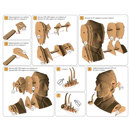 Это оригинальные 3D конструкторы (сборные модели). Каждый комплект изготовлен из пищевого гофрокартона - нетоксичного, экологически чистого материала, пригодного для повторного использования. А каждая деталь вырезана и прономерована при помощи высокоточной лазерной резки. Конструктор легко собрать по прилагаемой инструкции.
