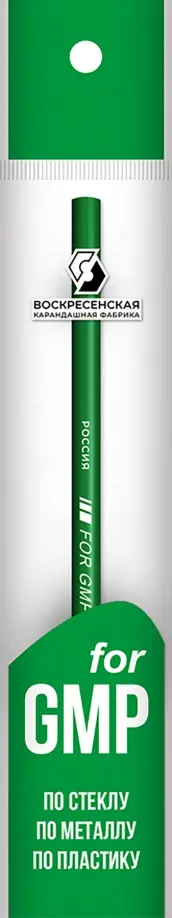 Карандаш специальный - For GMP. Предназначен для письма по поверхности стекла, пластика, металла. Градация 2М. Предназначен для графических работ любой сложности. Изготовлены из сырья и материалов природного происхождения и качественной, химически необработанной древесины липы, выращенной в экологически чистых районах России.