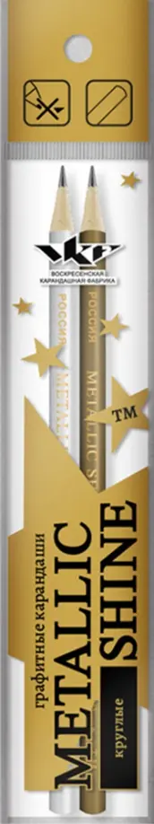 Карандаши круглой формы корпуса в золотом и серебряном цвете серии Metallic shine. Стильный дизайн и цвет создают удивительный по красоте карандаш. Выпускаются как с ластиком, так и без.