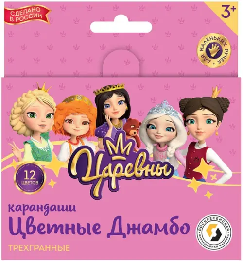 Карандаши цветные Джамбо Царевны, 12 цветов, короткие