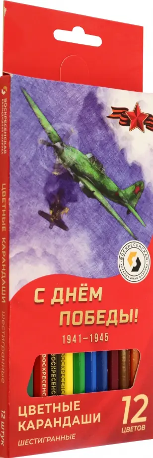 Специальная серия карандашей, приуроченная ко Дню Победы. Наборы составлены из основных цветов цветового круга. Имеют прочный, но очень мягкий стержень, с отличной пигментацией. Рисунки получаются яркими и насыщенными.