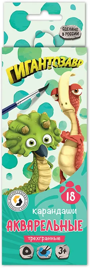 Карандаши цветные акварельные Гигантозавр, 18 цветов