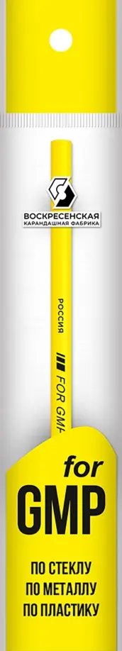 Карандаш специальный - For GMP. Предназначен для письма по поверхности стекла, пластика, металла. Градация 2М. Предназначен для графических работ любой сложности. Изготовлены из сырья и материалов природного происхождения и качественной, химически необработанной древесины липы, выращенной в экологически чистых районах России.