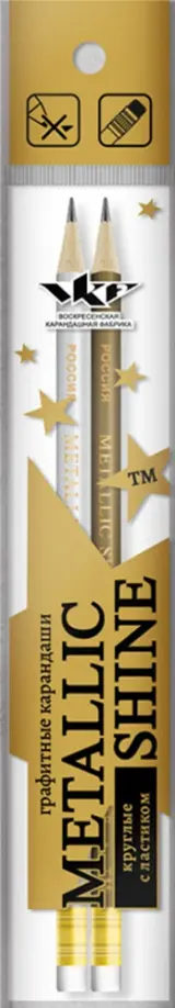Карандаши круглой формы корпуса в золотом и серебряном цвете серии Metallic shine. Стильный дизайн и цвет создают удивительный по красоте карандаш. Выпускаются как с ластиком, так и без.