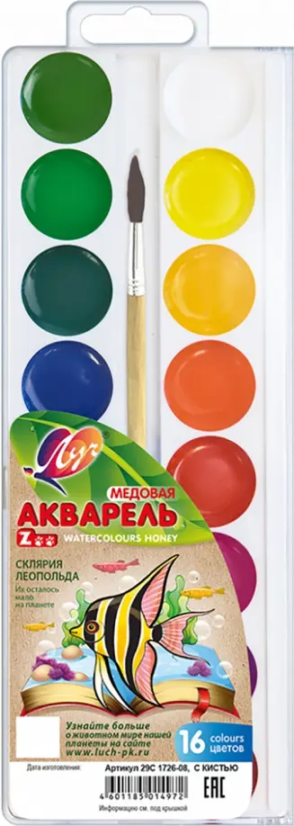 Если вы обнаружили ошибку в описании товара «Акварель Zoo, 16 цветов, с кистью», то выделите её мышкой и нажмите Ctrl+Enter. Спасибо, что помогаете нам стать лучше!