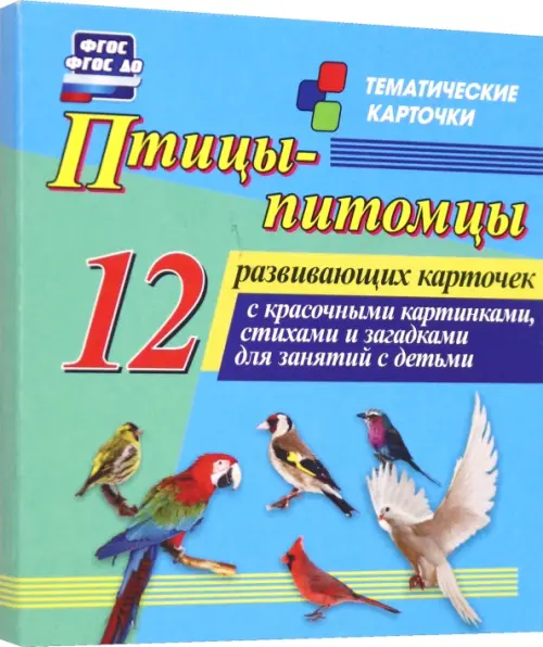 Птицы-питомцы. 12 развивающих карточек с красочными картинками, стихами и загадками для занятий