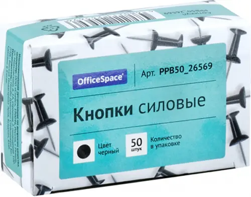 Кнопки силовые, черные шляпки, 50 шт в картонной коробке