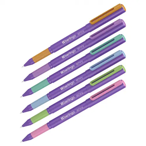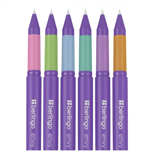 Шариковая ручка Berlingo серии Envy выполнена в ярких фирменных цветах бренда с контрастными деталями. Soft touch покрытие корпуса и колпачка придает ручке приятную бархатистую текстуру и солидный матовый внешний вид. Мягкий резиновый грип и корпус увеличенного диаметра обеспечивают дополнительный комфорт при письме, а удобный клип оригинальной формы позволит легко закрепить ручку на кармане рубашки, ежедневнике или планшете. Чернила пониженной вязкости на масляной основе гарантируют максимальную легкость письма без усталости кисти. Диаметр пишущего узла 0,7 мм подходит для любого стиля письма.