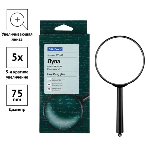 Лупа канцелярская OfficeSpace Professional, 75 мм, х5