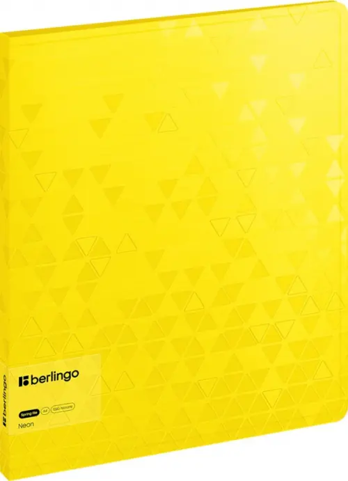 Папка пластиковая с пружинным скоросшивателем Berlingo "Neon" формата А4. Изготовлена из высококачественного полипропилена с матовой текстурой поверхности "рельефные треугольники", на которой не видно отпечатков пальцев и мелких царапин. Предназначена для хранения документов. Толщина обложки 1000 мкм. На внутренней стороне обложки оснащена плотным прозрачным карманом для удобного хранения мелочей: ручки, заметок, визиток, дисков, флешек и др. Папка вмещает до 150 листов. Упакована в индивидуальный прозрачный пакет по форме.