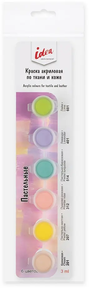 Краски по ткани и коже, пастель, 6 цветов