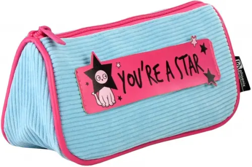 Пенал школьный Феникс+ (без наполнения, 22x8x5,5 см, вельвет, молния, нашивка из искусственной кожи с печатью, ПЭТ-пакет).