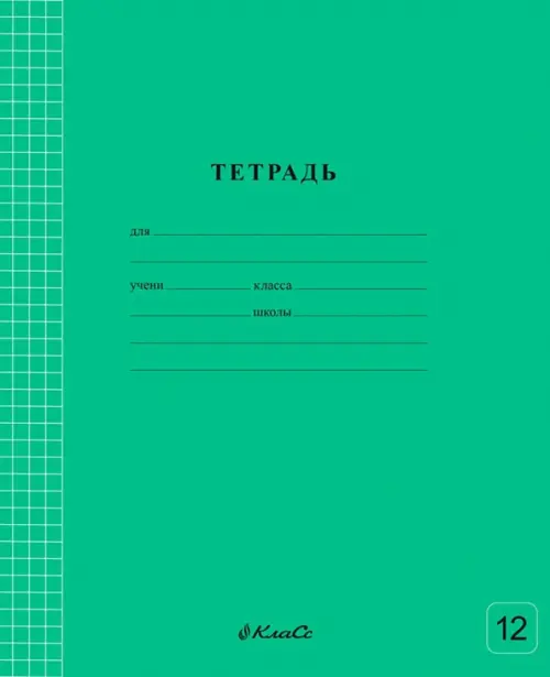 Тетрадь ученическая школьная Классная, зеленая, A5+, 12 листов, клетка