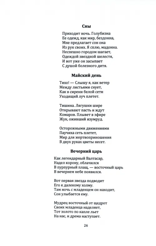В книге представлена поэзия выдающегося австрийского поэта Р. М. Рильке (полными переводами сборников "Жертвы ларам", "Цикорий", "Увенчанный снами" и отдельными стихотворениями из сборников "Жизнь и песни", "Христос", "Книга образов") и его драматургия - пьесами "Воздух высоты" и "Обычная жизнь". В приложении даны подборки стихотворений немецких и австрийских поэтов ХVIII-ХХ веков: М. Г. Лихтвера, И. В. Гёте, Я. М. Р. Ленца, И. Х. Ф. Гёльдерлина, К. Брентано, А. фон Шамиссо, Н. Ленау, Т. Фонтане, Г. Гейма, И. Бехера, Б. Брехта, Г. Маурера. Каждой подборке предпослана статья об авторе стихотворений.