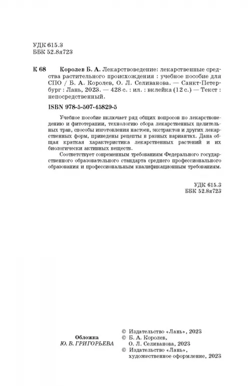 Если вы обнаружили ошибку в описании товара «Лекарствоведение. Лекарственные средства растительного происхождения» (авторы: Королев Борис Александрович, Селиванова Ольга Леонидовна), то выделите её мышкой и нажмите Ctrl+Enter. Спасибо, что помогаете нам стать лучше!