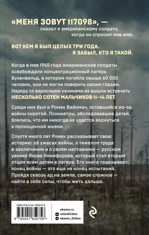 Спустя много лет Ромек рассказывает свою историю: об ужасах войны, о тяжелом труде в заключении и о своем наставнике — русском узнике Якове Никифорове, который стал вторым отцом всем детям в лагере. Его книга показывает: конец войны — это еще не конец испытаний. Многие из Бухенвальдских мальчиков ломались и умирали вскоре после освобождения. Пройдя сквозь ад на земле, самое сложное — это справиться с травматическим опытом и смириться с утратой всей семьи. И найти в себе любовь, прощение и силы к тому, чтобы жить дальше.
