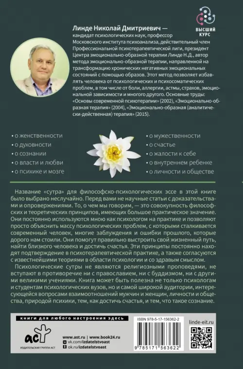Если вы обнаружили ошибку в описании товара «Психология для реальной жизни. Психологические сутры» (авторы: Линде Николай Дмитриевич), то выделите её мышкой и нажмите Ctrl+Enter. Спасибо, что помогаете нам стать лучше!