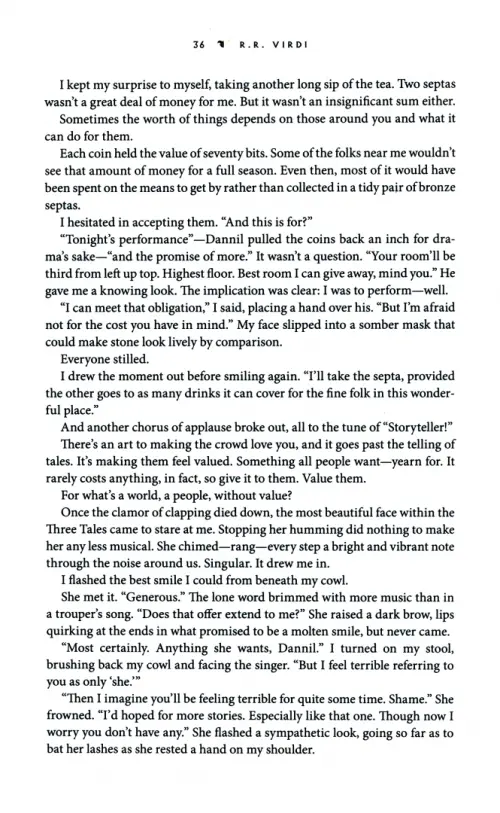 Так начинается повесть о сказителе и певице, которые надеются укрыться от посторонних глаз в таверне. Их прошлые грехи не забыты, а их враги не желают оставлять их в покое. Жизнь, которую они надеялись предать забвению, напоминает о себе, рискуя уничтожить привычный им мир. Ведь сбежать от прошлого невозможно, и у каждой истории должен быть конец.