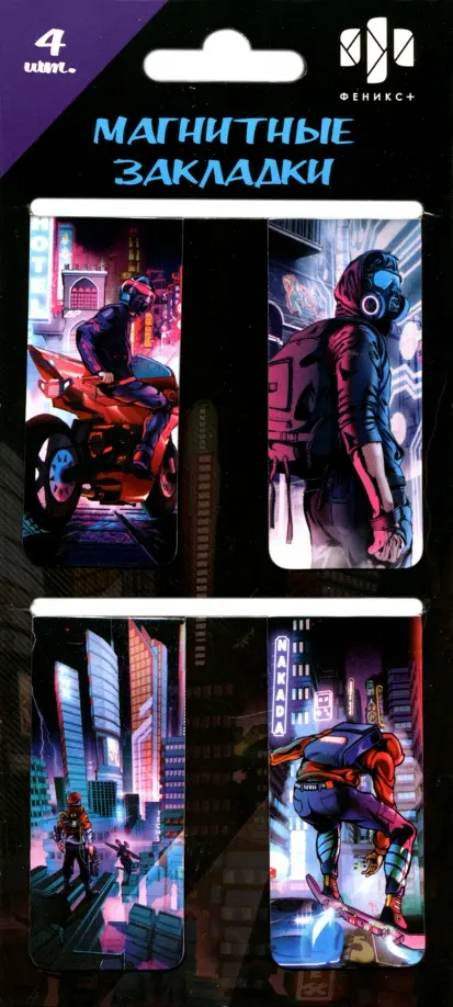 Набор закладок магнитных для книг (4 шт. в наборе, размер 25х58 мм, материал: мелованная бумага, магнитный винил 0.4 мм; цвет: полноцветный дизайн, особенности: глянцевая ламинация, индивидуальная упаковка: ПЭТ-пакет с европодвесом)