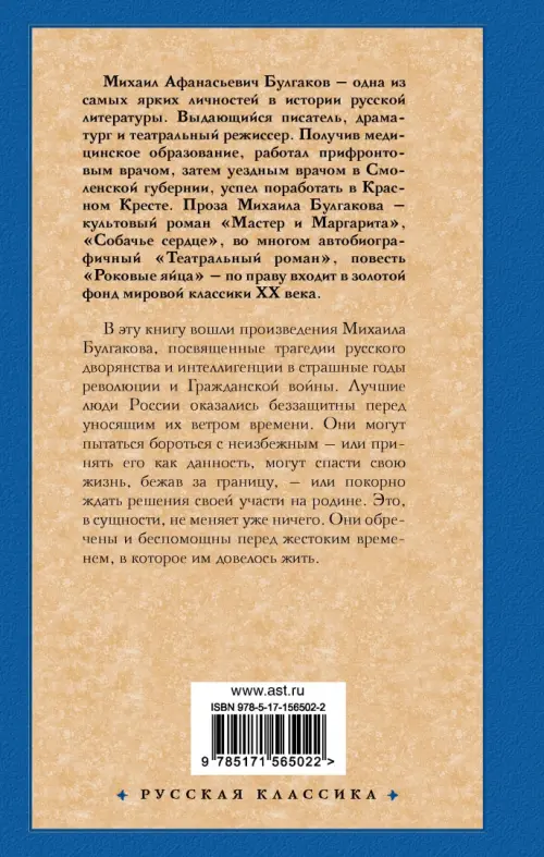 В эту книгу вошли произведения Михаила Булгакова, посвященные трагедии русского дворянства и интеллигенции в страшные годы революции и Гражданской войны. Лучшие люди России оказались беззащитны перед уносящим их ветром времени. Они могут пытаться бороться с неизбежным – или принять его как данность, могут спасти свою жизнь, бежав за границу, – или покорно ждать решения своей участи на родине. Это, в сущности, не меняет уже ничего. Они обречены – и беспомощны перед жестоким временем, в которое им довелось жить.