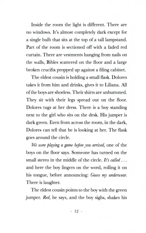 Dolores adjusts to the rhythm of her new life - to the nuns with wild hairs curling from their chins, the soup chewed as if it were meat, the bells that ring throughout the day.