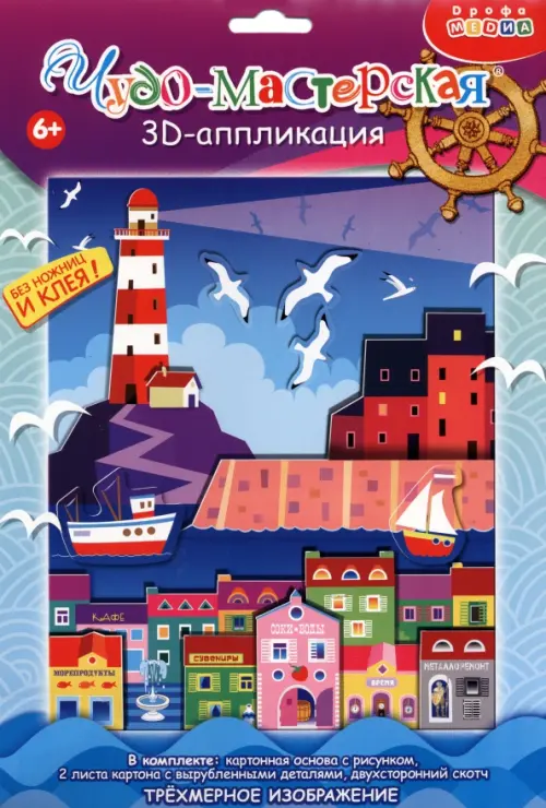 3D-аппликация — современный и очень увлекательный вид творчества. Данный набор позволит создать необыкновенно выразительную 3D-картину. Яркие и красочные детали изображения, выполненные из плотного картона, выступают над основой, создавая причудливый и сказочный мир. Этот удивительный 3D-эффект возникает благодаря использованию объёмного двустороннего скотча. Готовое изделие смотрится необыкновенно эффектно.