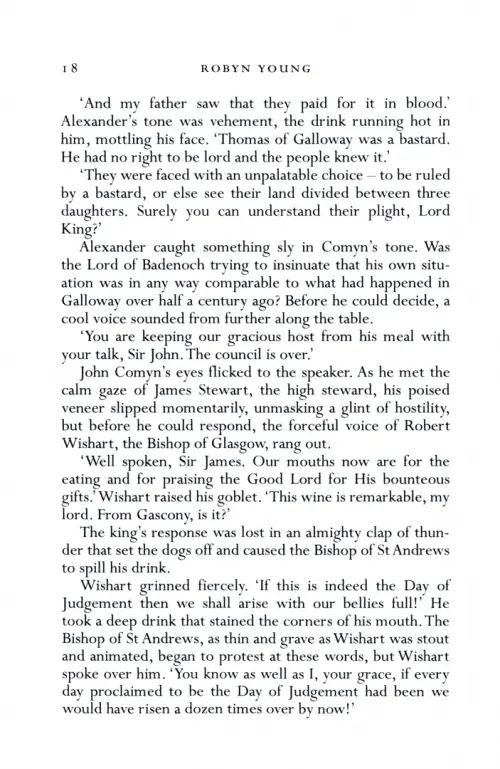 Scotland is in the grip of the worst winter in living memory. Some say the Day of Judgement has come. The king of Scotland rides out from Edinburgh into the stormy dark. On the road he is murdered by one of his own men, leaving the succession to the throne wide open. Civil war threatens as powerful Scottish families jostle for power, not knowing that Edward, now king of England, has set his own plans in motion.