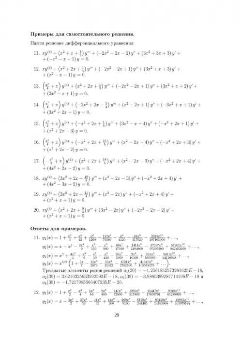 В учебном пособии рассмотрены многочисленные варианты регулярных особых точек и приведены методики решения дифференциальных уравнений четвертого порядка при помощи рекуррентных алгоритмов. В книге подобраны многочисленные варианты уравнений, имеющих решения в виде «точной формулы». Количество вариантов решаемых уравнений в виде «точной формулы» превосходит их количество во всех известных автору справочниках. Учебное пособие содержит большое количество задач и алгоритмов для практического закрепления материала, будет полезно при изучении и решении дифференциальных уравнений четвертого порядка с переменными коэффициентами студентам высших учебных заведений.