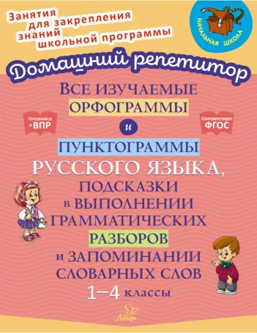 Здесь школьник найдёт все правила орфографии и пунктуации, запомнит правописание и выделение важных орфограмм и пунктограмм, освоит выполнение языковых разборов, сможет выучить многие словарные слова.