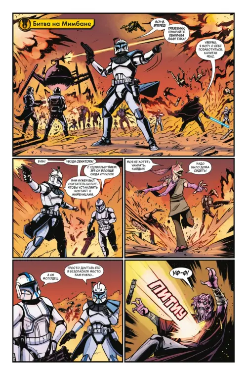 Капитан Рекс ведёт своих собратьев-клонов в жестокий бой против армий дроидов сепаратистов. И разве для защиты благородной Галактической Республики можно отыскать союзника лучше, чем… Джа-Джа Бинкс?!