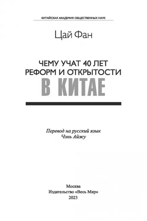 Если вы обнаружили ошибку в описании товара «Чему учат 40 лет реформ и открытости в Китае» (авторы: Цай Фан), то выделите её мышкой и нажмите Ctrl+Enter. Спасибо, что помогаете нам стать лучше!