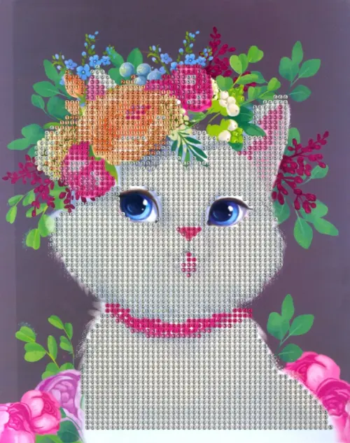 Алмазная мозаика с частичным заполнением. Милая кошечка