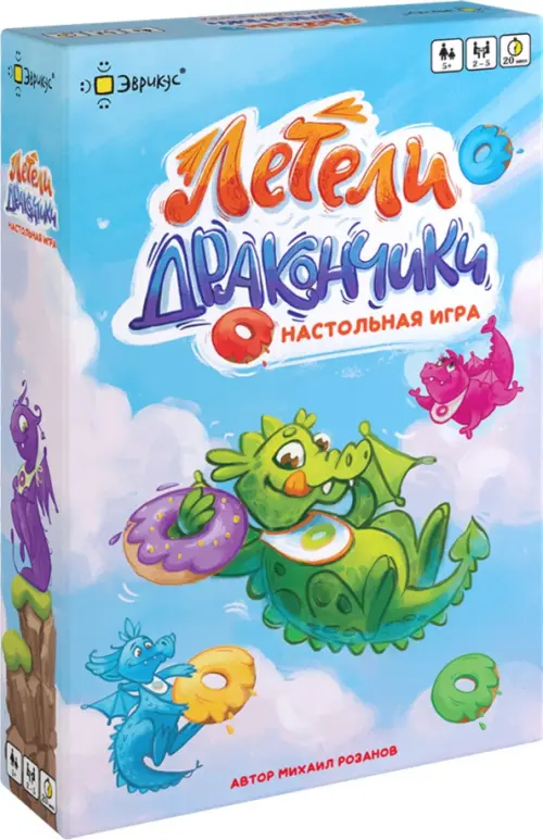 "Летели дракончики" – это семейная игра-гонка, где вам предстоит привести к финишу несколько дракончиков по вашей карточке-заданию. Замедляйте или ускоряйте летающих дракончиков, подкармливая их любимыми лакомствами. Но помните: чем больше пончиков слопает дракончик, тем сильнее замедлится его полёт!