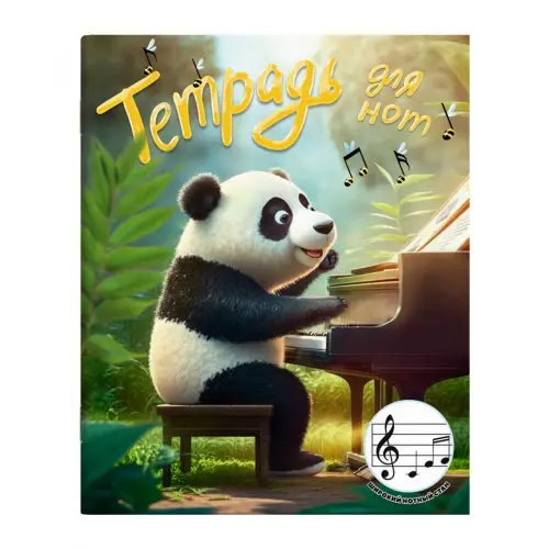 Тетрадь для нот для младших классов 24 л. А5+, белый офсет, мягкий переплёт (2 скобы), облож.- мелованный картон 190 г/м?, глянцевая ламинация. Расширенный нотный стан. нет/